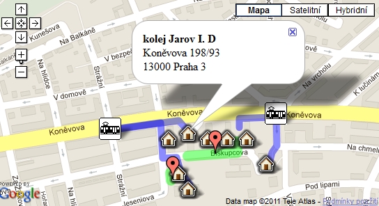 Nejlépe se k nám dostanete tramvajemi č. 1, 9, nejblíže ke koleji se nachází zastávky Chmelnice a Strážní